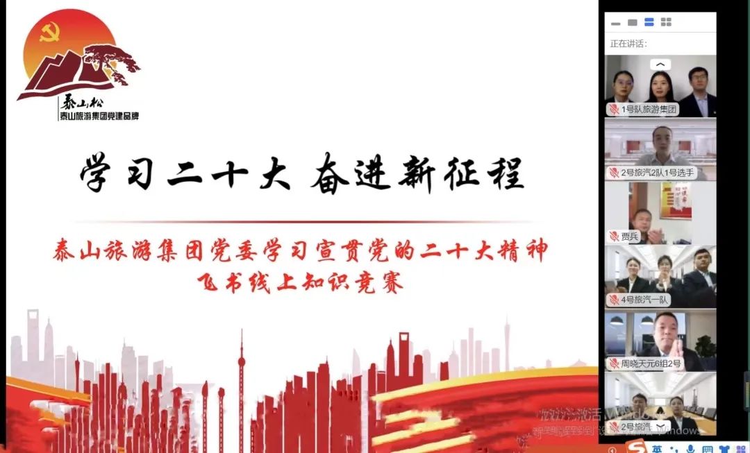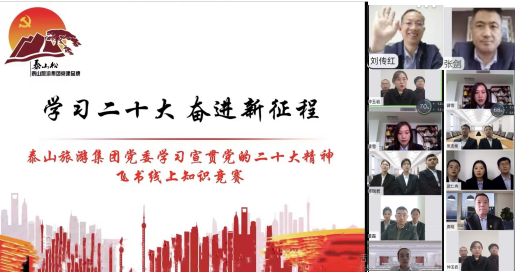 學(xué)習(xí)貫徹黨的二十大精神是泰山旅游集團(tuán)當(dāng)前的首要政治任務(wù)和頭等大事,集團(tuán)黨委緊緊圍繞泰山文旅集團(tuán)關(guān)于學(xué)習(xí)宣傳貫徹黨的二十大“快、實(shí)、深”的要求,迅速掀起學(xué)習(xí)熱潮、營(yíng)造濃厚氛圍。鑒于疫情影響,11月3日下午在飛書(shū)線上舉辦了“學(xué)習(xí)二十大 奮進(jìn)新征程”知識(shí)競(jìng)賽,集團(tuán)及各子公司6支代表隊(duì)18名選手進(jìn)行了多輪精彩激烈的答題,拉開(kāi)了泰山旅游集團(tuán)學(xué)習(xí)宣傳貫徹黨的二十大精神系列活動(dòng)的序幕。