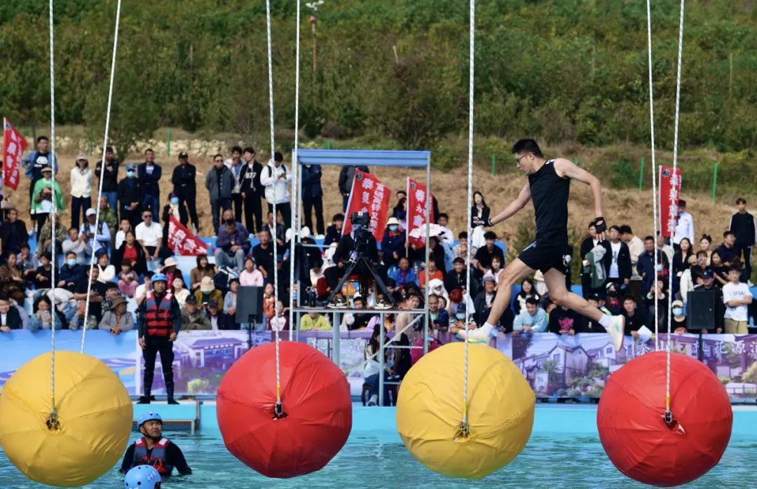 10月5日上午9點(diǎn)整,由泰山文旅集團(tuán)與山東省廣播電視臺綜藝頻道聯(lián)合舉辦的《快樂向前沖》在泰山桃花源景區(qū)正式開賽。當(dāng)日,來自全國各地的1000余名參賽選手、8000余名觀眾齊聚一堂,現(xiàn)場感受運(yùn)動的樂趣與挑戰(zhàn);顒娱_始,往屆“快沖”闖關(guān)老將們進(jìn)行了精彩的闖關(guān)表演,贏得了在場觀眾們的陣陣歡呼聲與掌聲。選手們紛紛上場,在闖關(guān)途中“各顯神通”,現(xiàn)場氣氛歡快熱烈。
